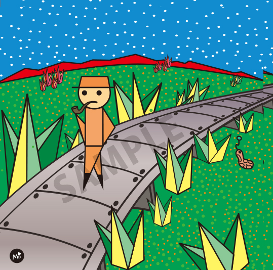 Paapa often goes for walks. I wonder what he's thinking about while he's walking. He's smoking oxygen from his pipe. Apparently, adults who moved from Earth haven't yet adapted to the thin air on Mars, and sometimes find it difficult.
